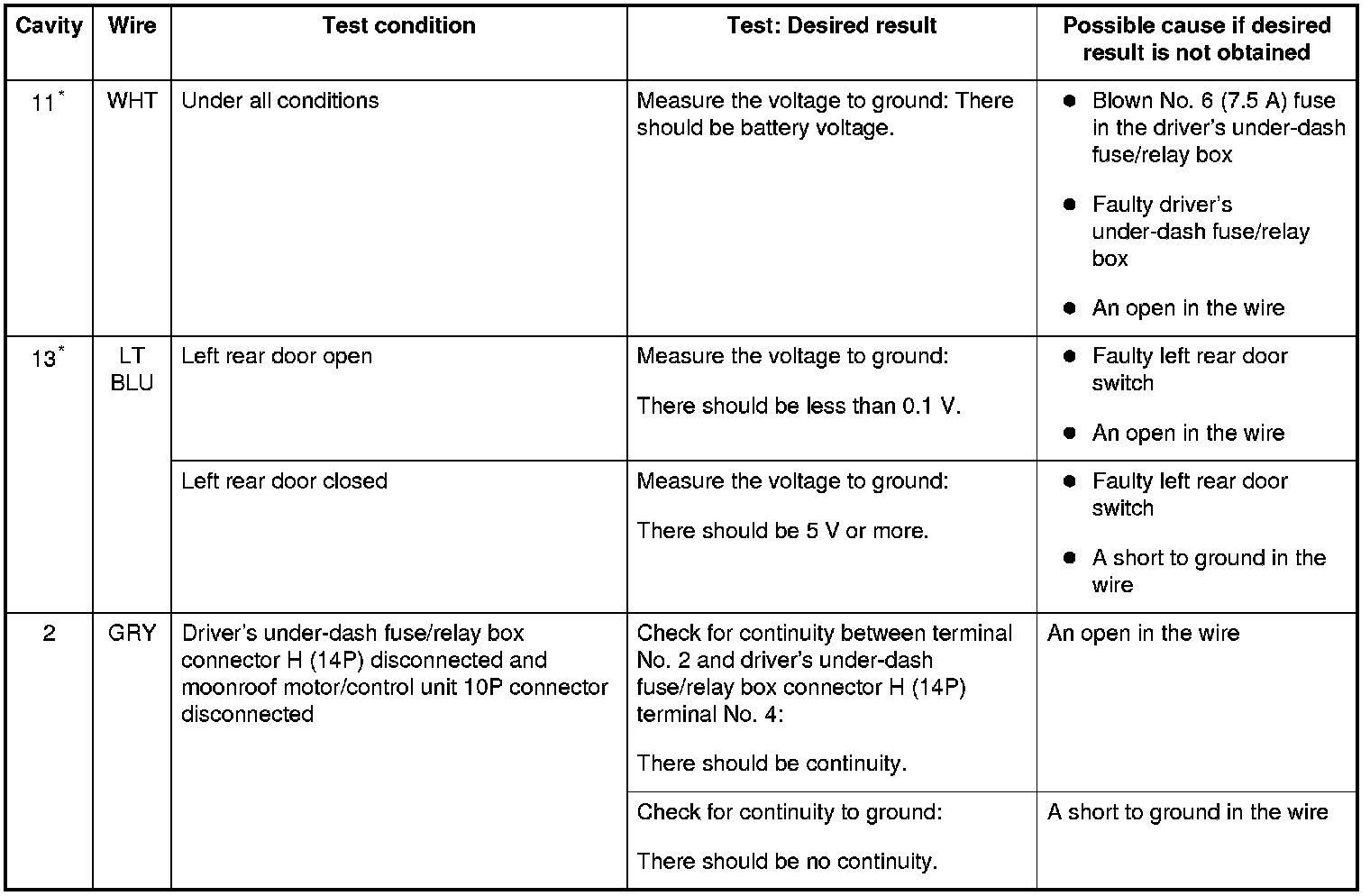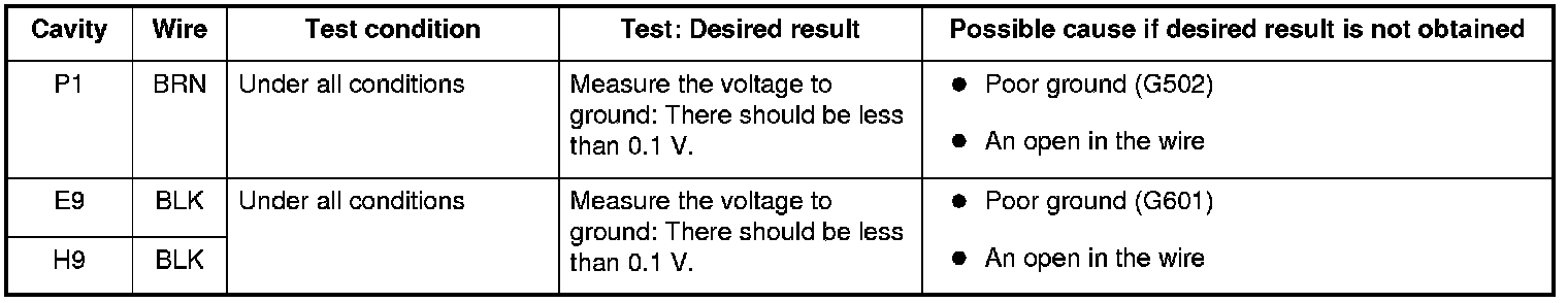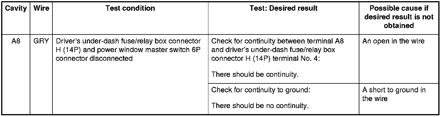 6. Reconnect the connectors to the driver's under-dash fuse/relay box, and do these input tests at the connectors.