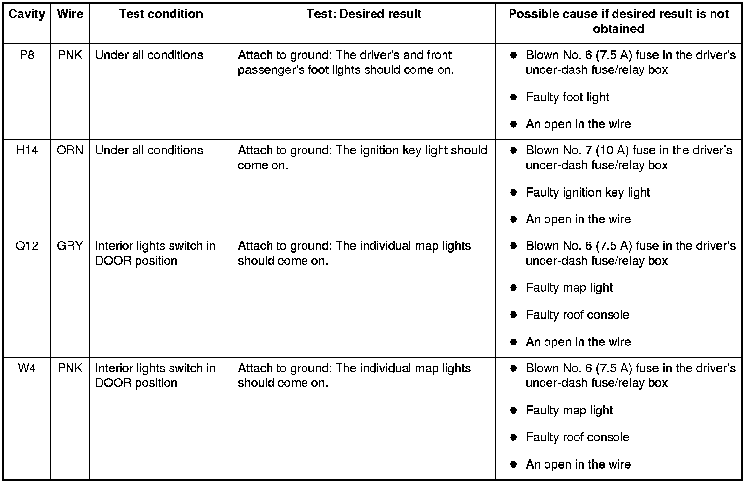 6. Reconnect the connectors to the driver's under-dash fuse/relay box, and do these input tests at the connectors.