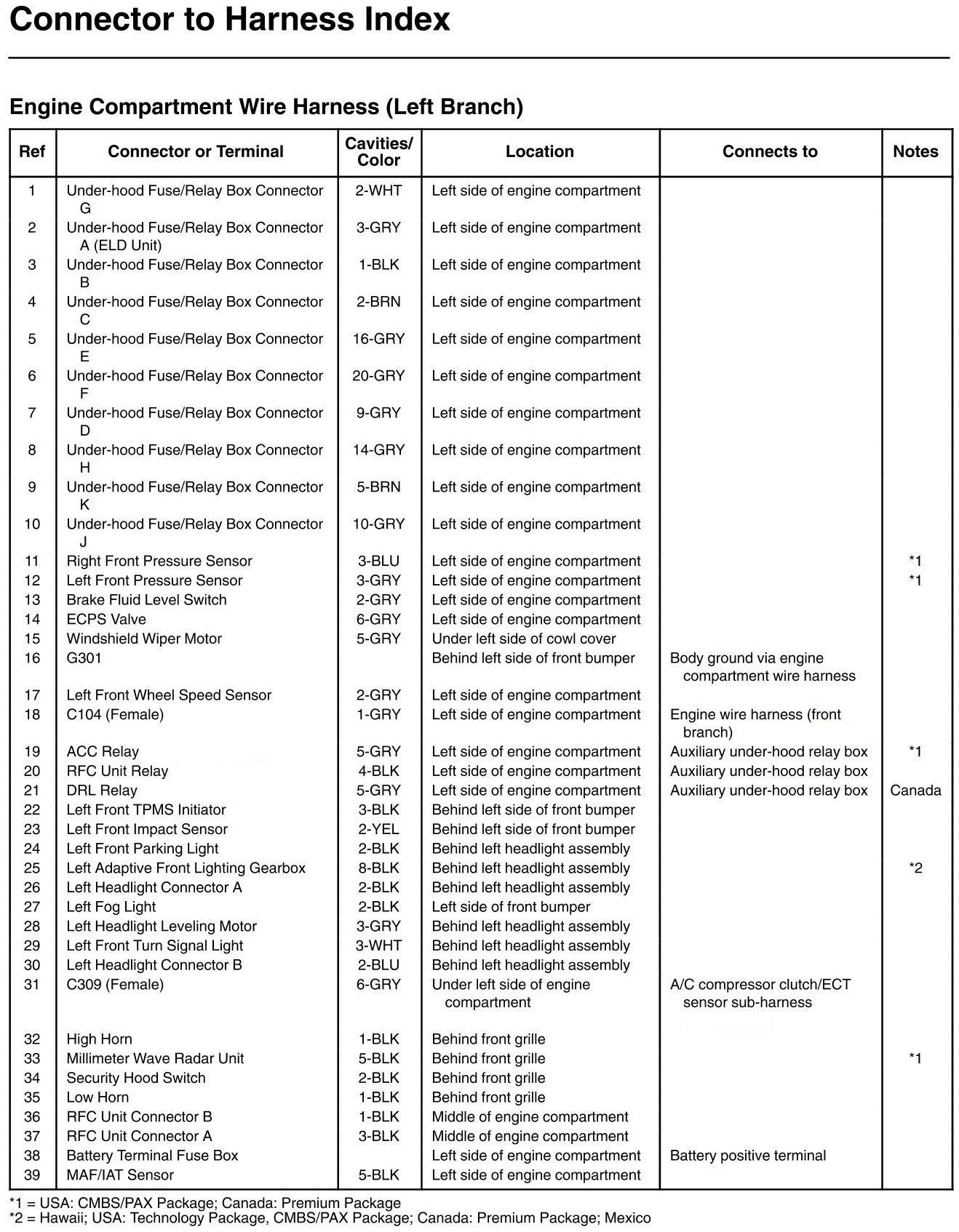 Engine Compartment Wire Harness (Left Branch) Connector And Harness Locations
