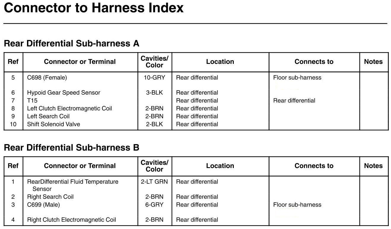 Rear Differential Subharness A And Rear Differential Subharness B Connector And Harness Locations