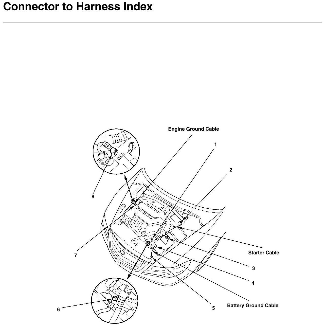 Starter Cable, Battery Ground Cable And Engine Ground Cable Connector And Harness Locations