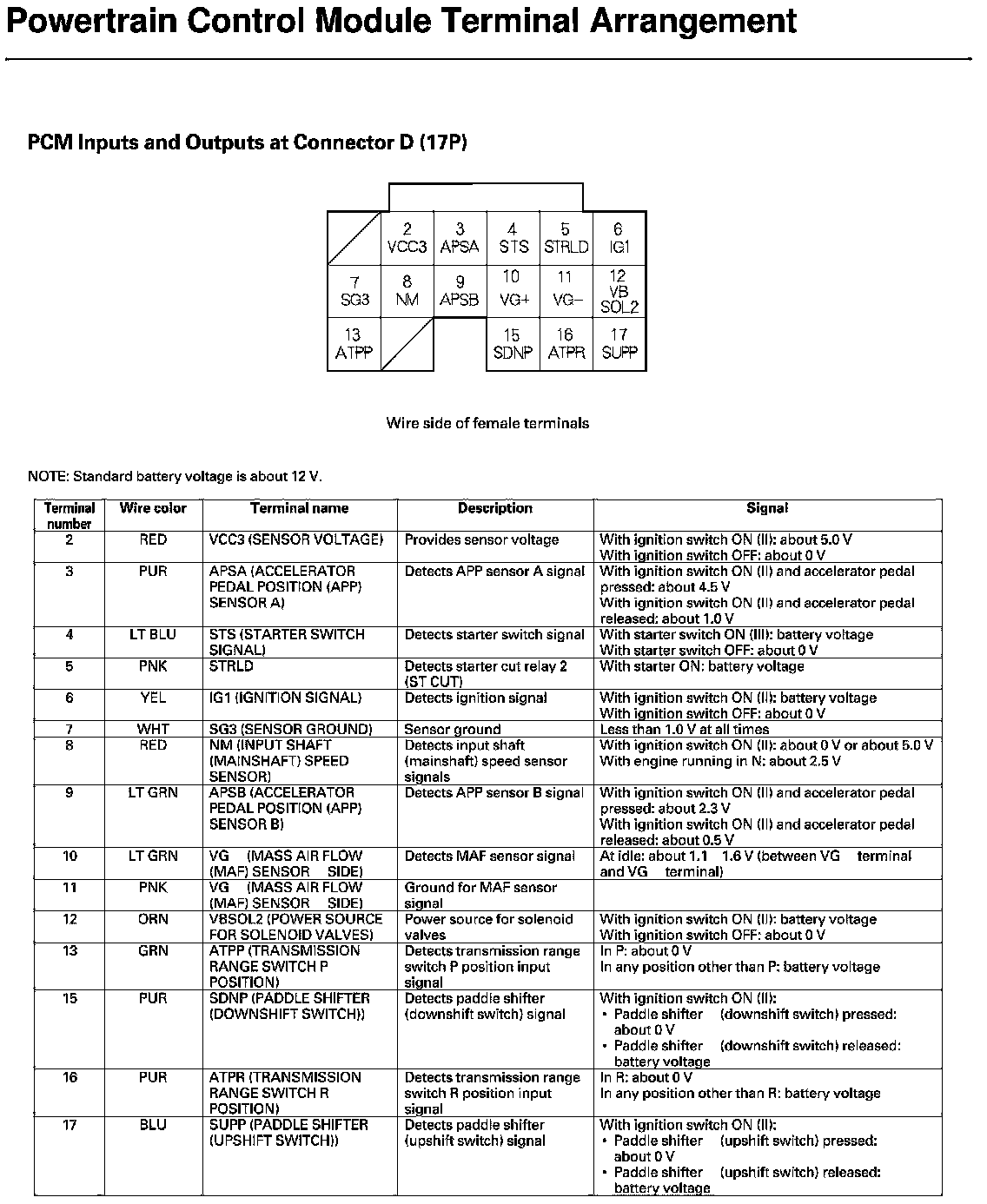 PCM Inputs And Outputs At Connector D