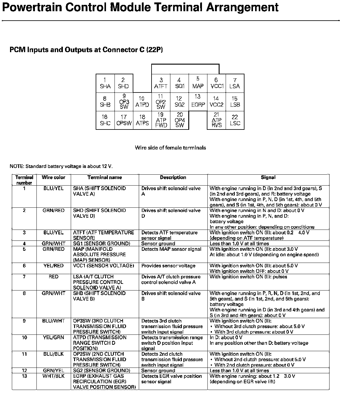 PCM Inputs and Outputs at Connector C