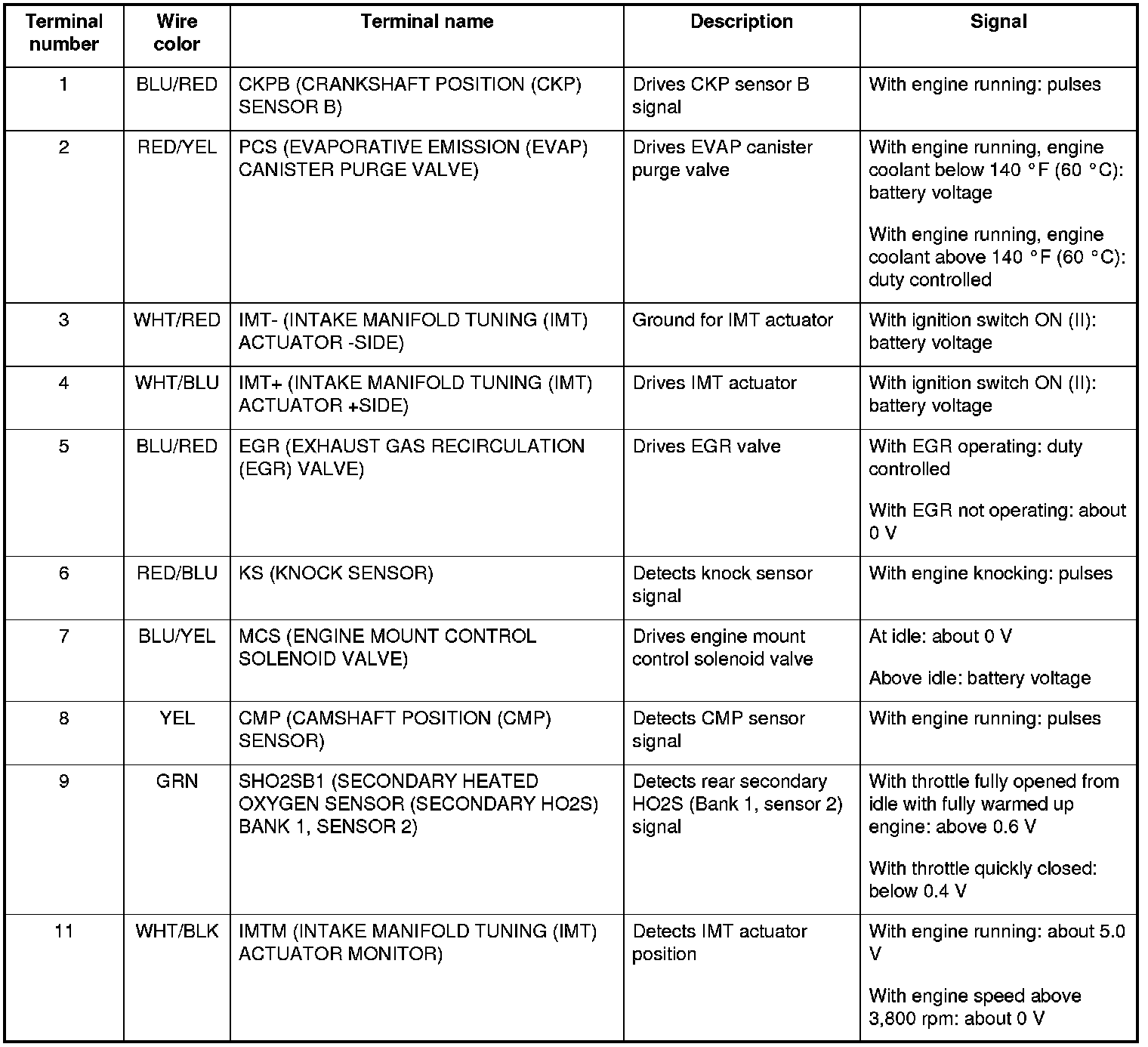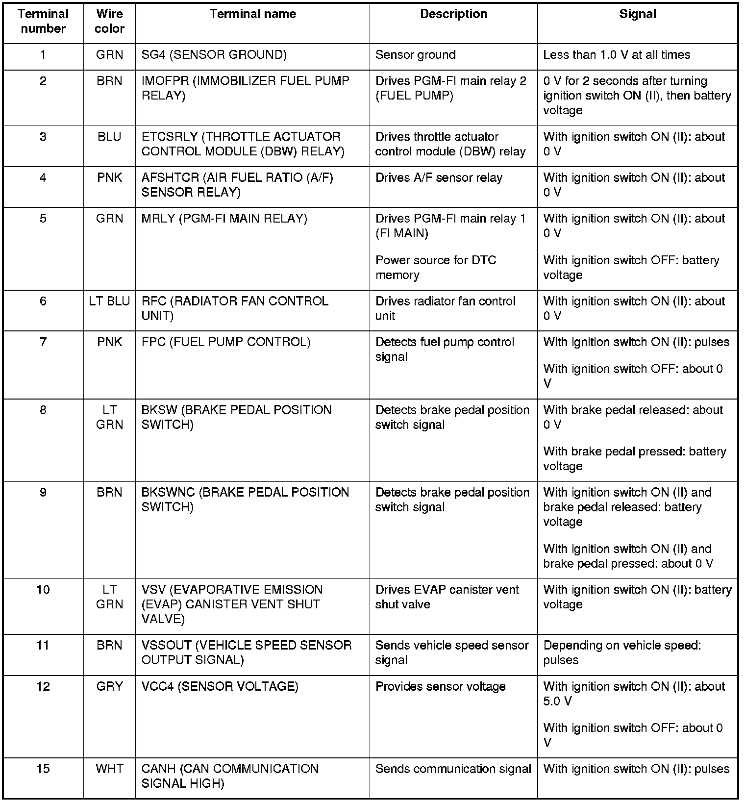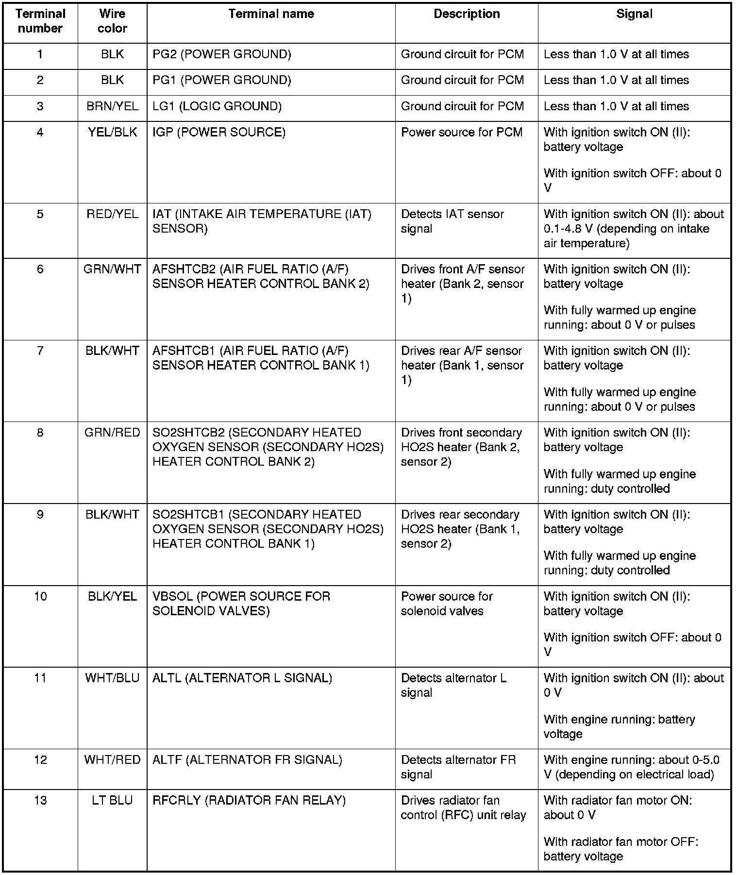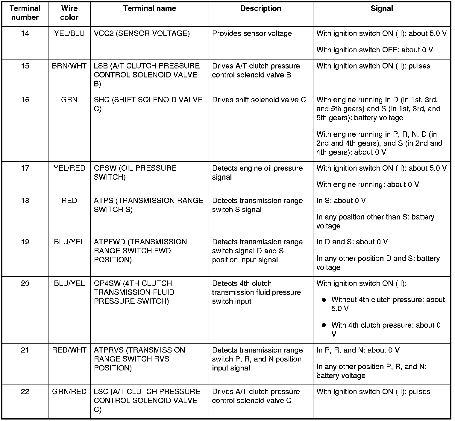 PCM Inputs and Outputs at Connector C (22P)