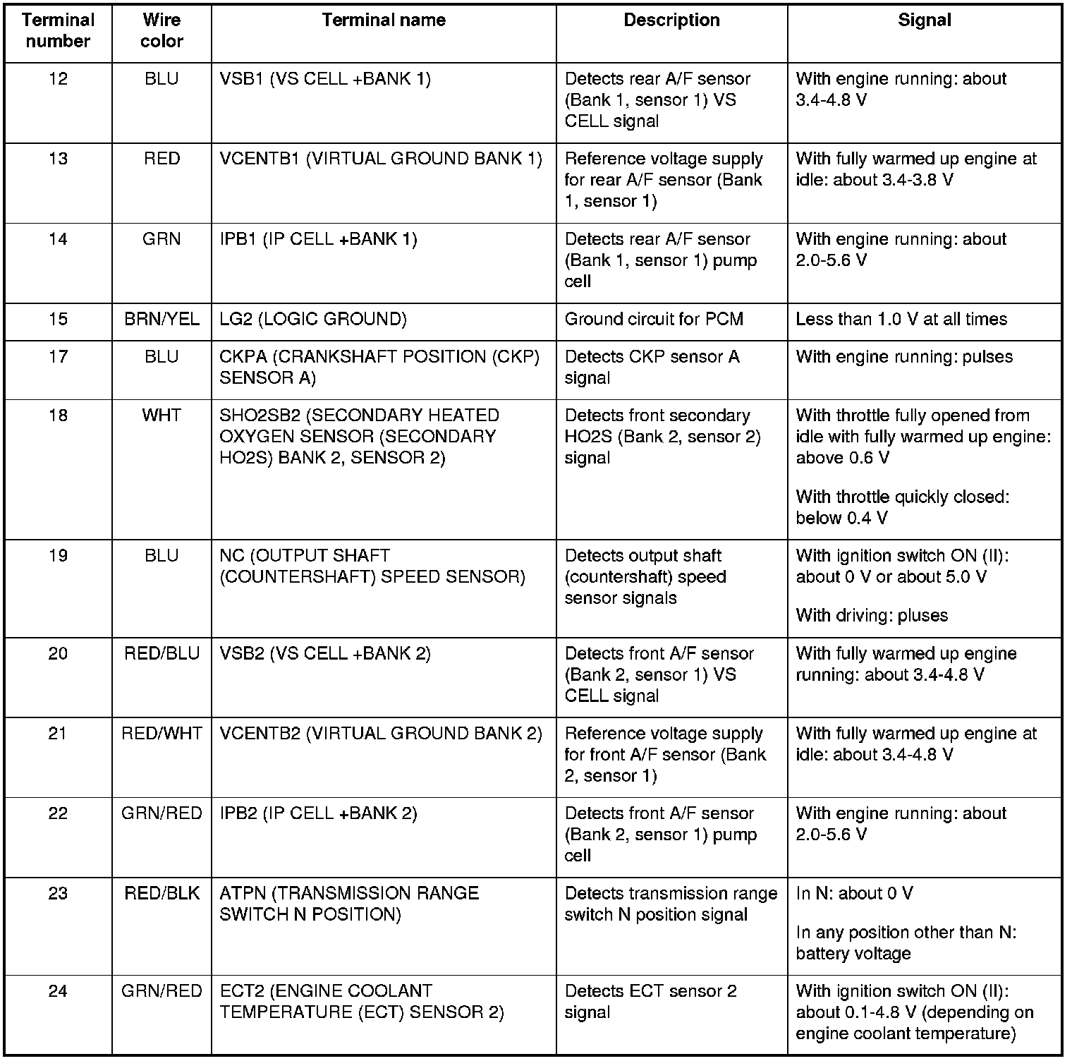 PCM Inputs and Outputs at Connector B (24P)