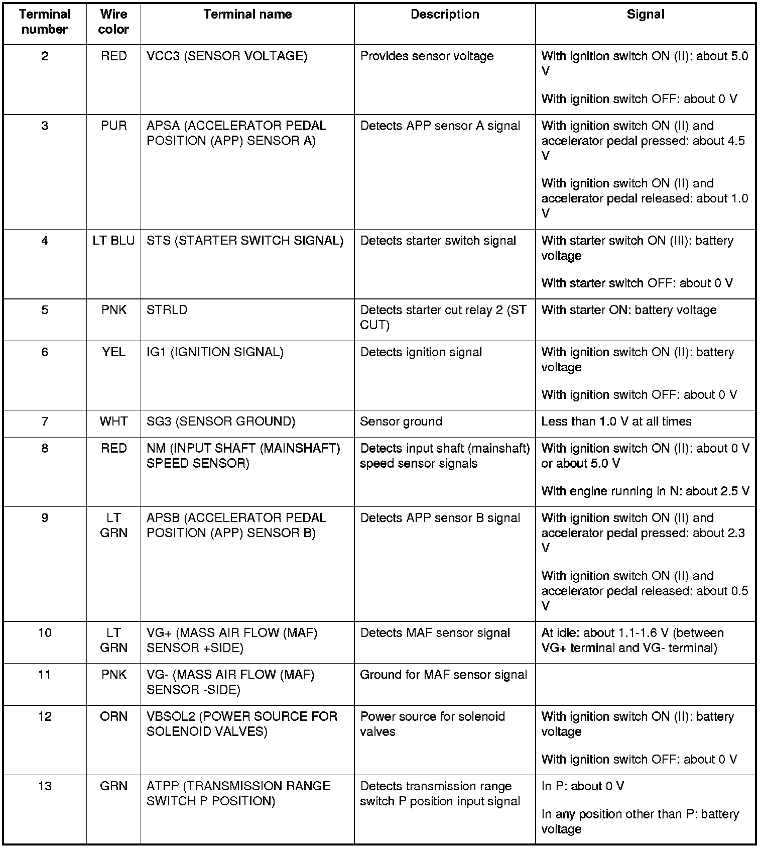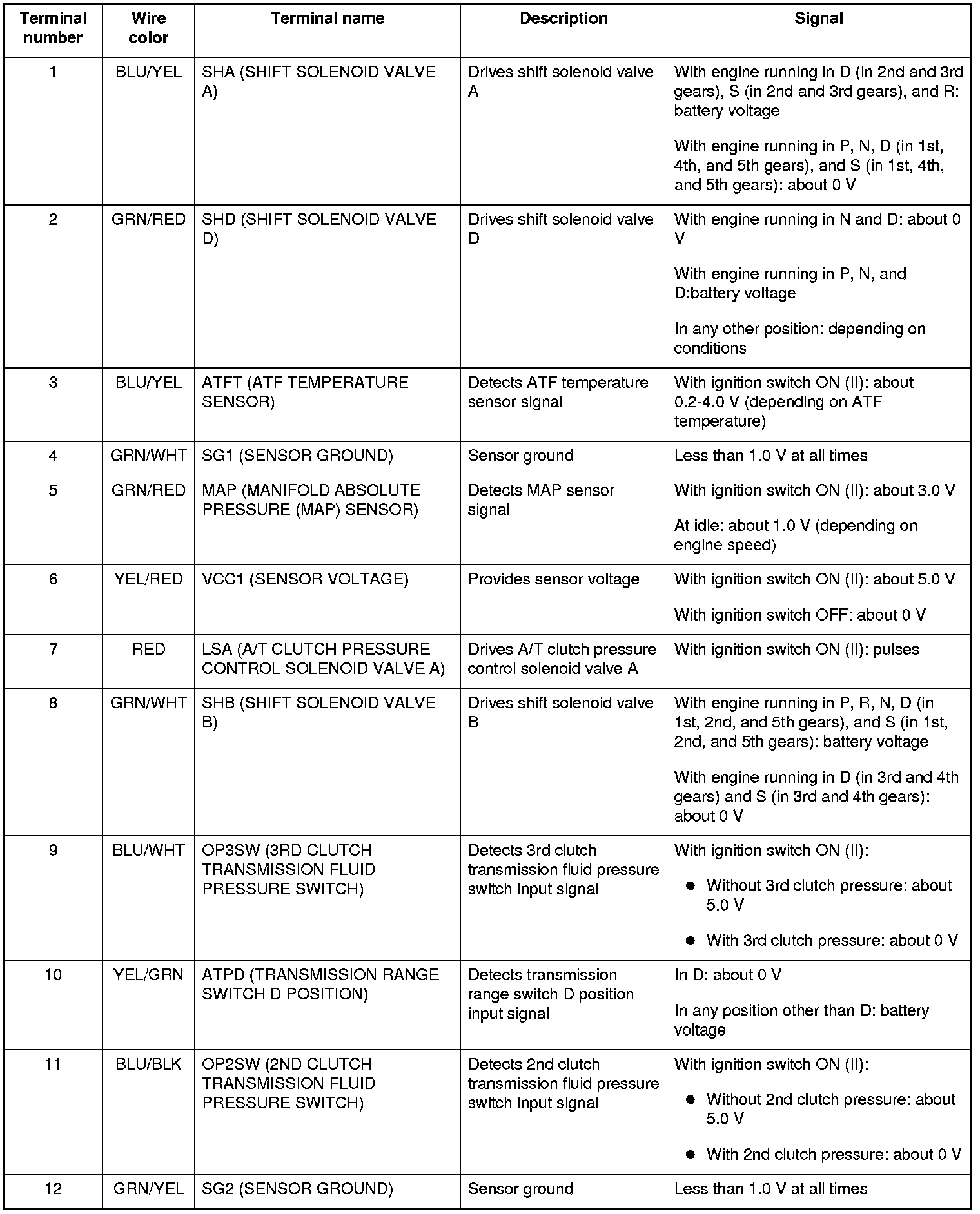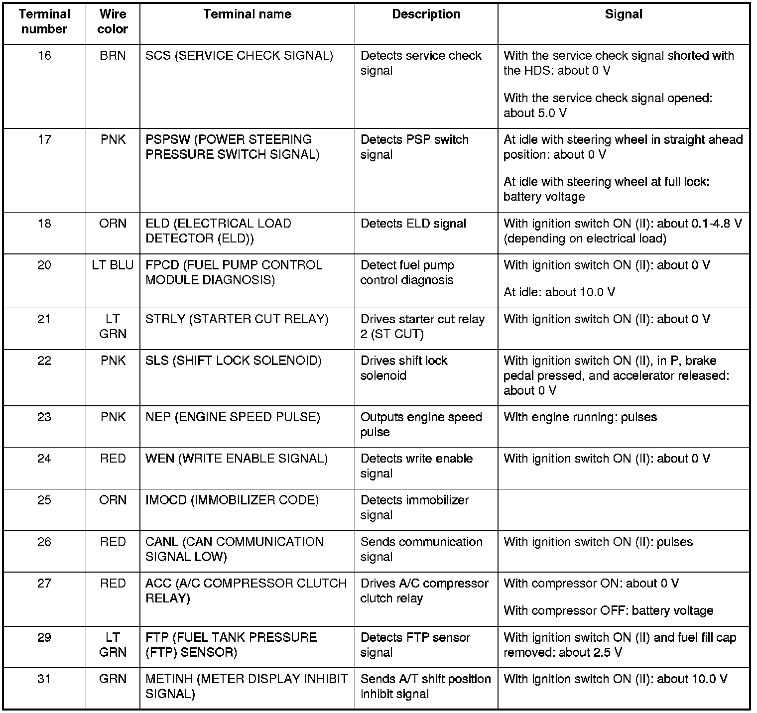 PCM Inputs and Outputs at Connector A (31P)
