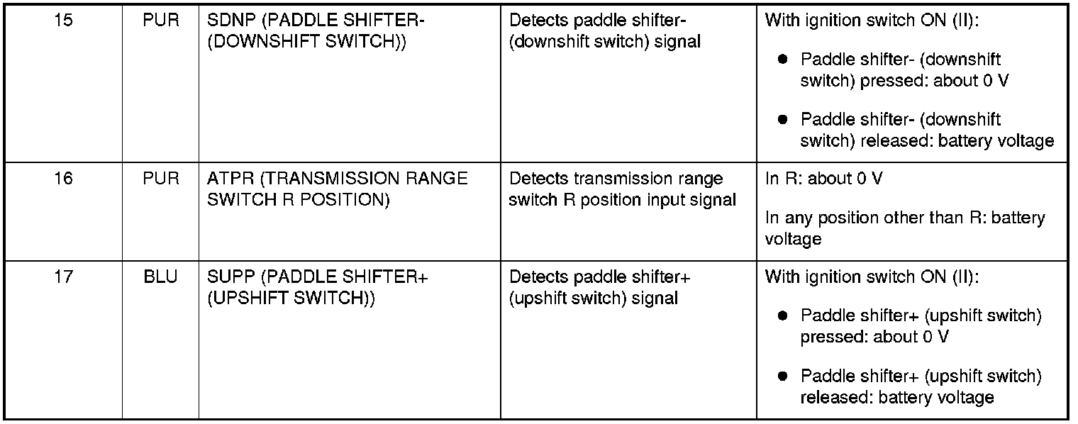 PCM Inputs and Outputs at Connector D (17P)