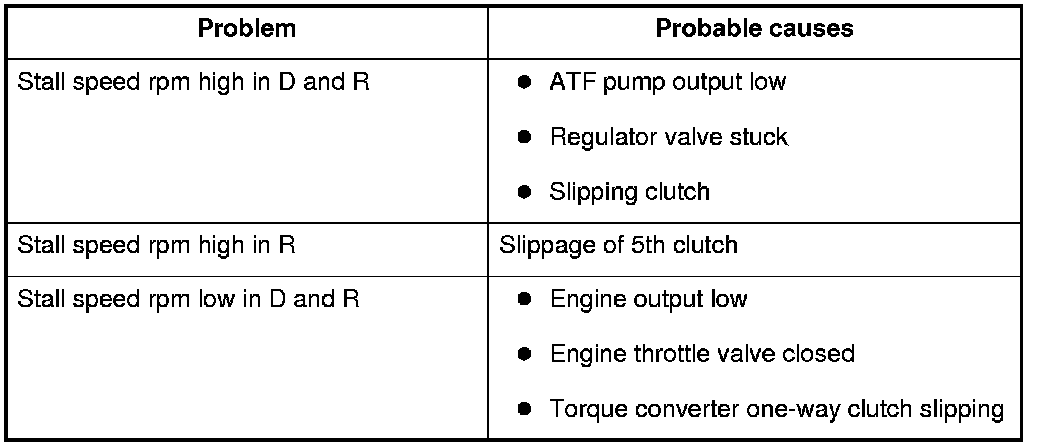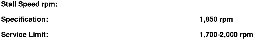 8. If any of the stall speeds are out of the service limit, refer to the problems and probable causes listed in the table.