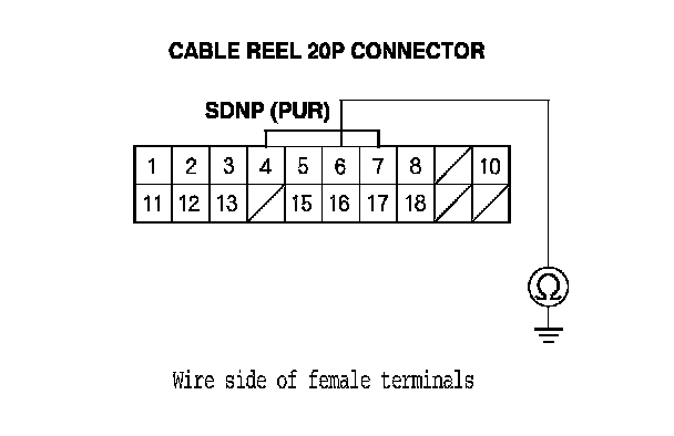4. Check for continuity cable reel 20P connector terminal No. 15 and body ground.
