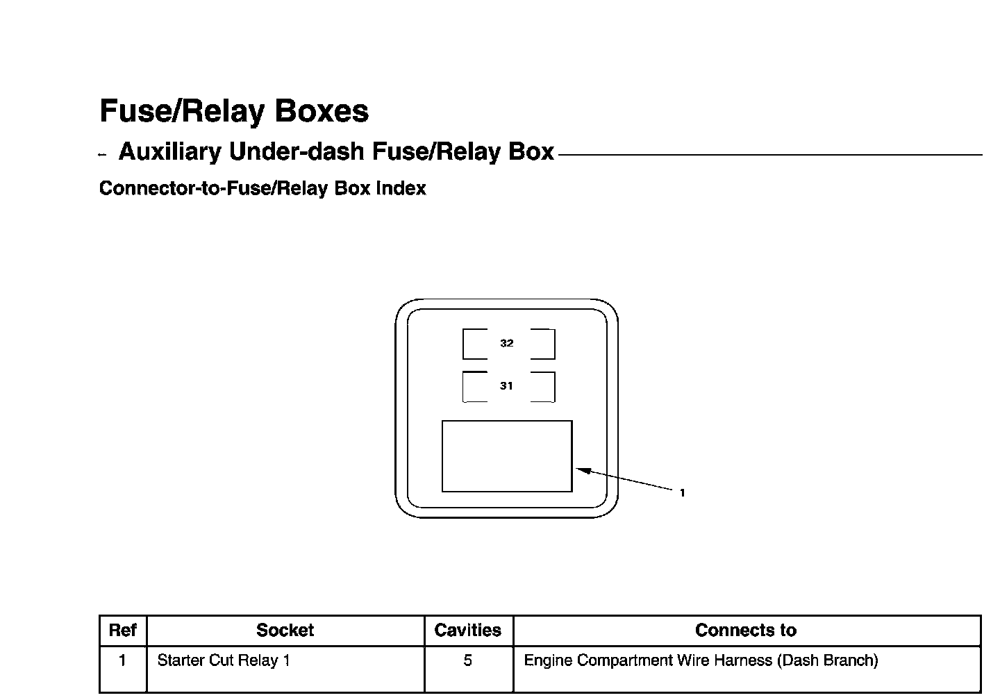 Auxiliary Under-dash Fuse/Relay Box - Connector-to-Fuse/Relay Box Index