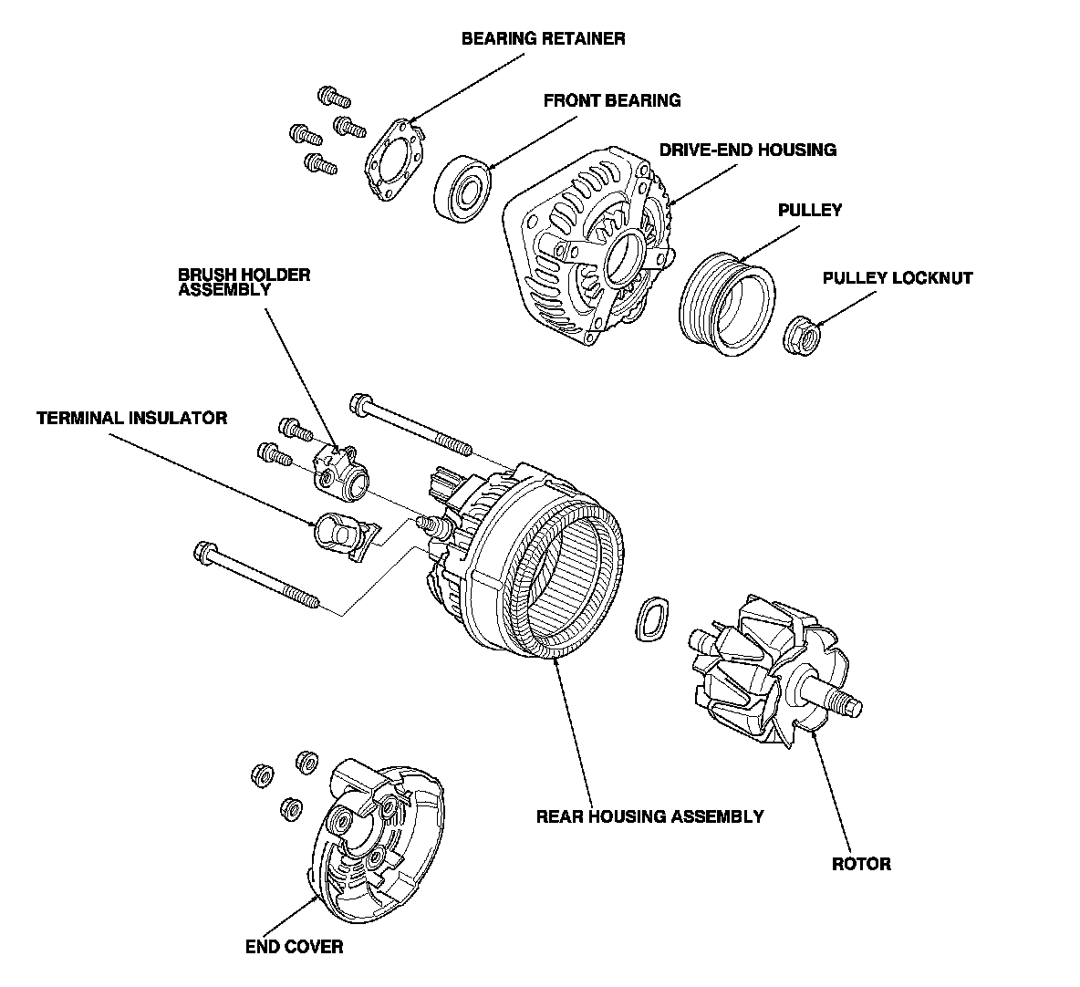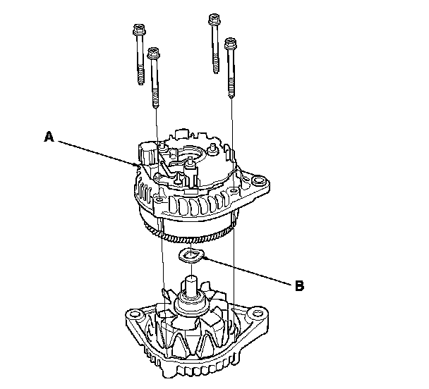 16. Assemble the alternator in the reverse order of disassembly, and note these items: