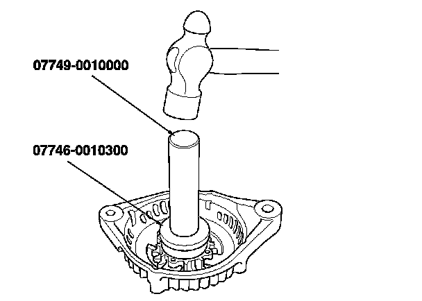 12. Install a new front bearing in the drive-end housing with a hammer, the driver handle, and attachment (42 x 47 mm).