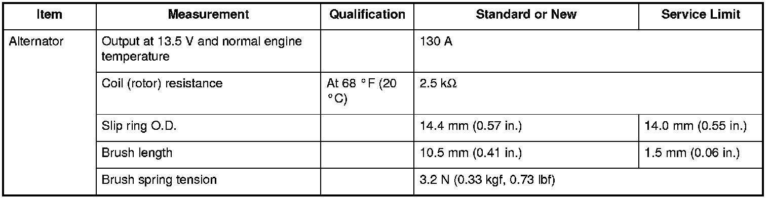 Charging System: Specifications