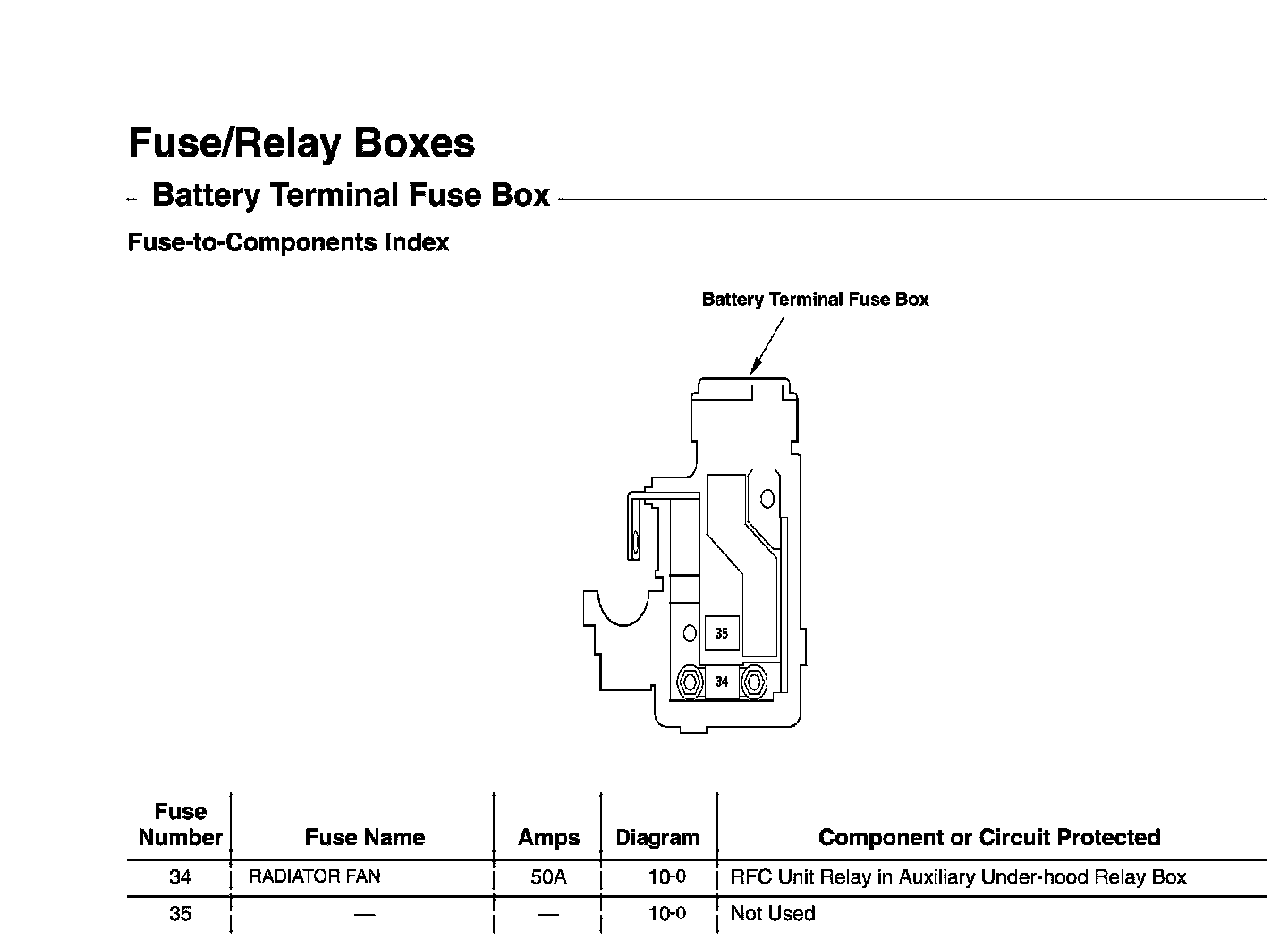 Battery Terminal Fuse Box - Fuse-to-Components Index