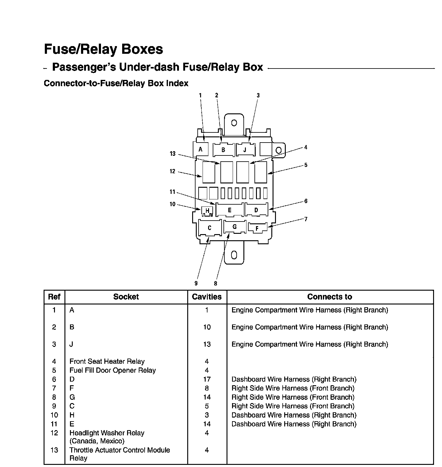 Passenger's Under-dash Fuse/Relay Box - Connector-to-Fuse/Relay Box Index