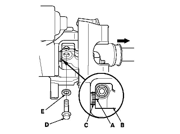 7. Pull the steering joint fully towards the steering column shaft side, then tighten the steering joint bolt (D) to the specified torque.
