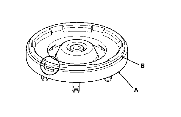 1. Align the damper mounting base (A) and spring mounting cushion (B) as shown, then reassemble the damper except for the washer and self-locking nut.