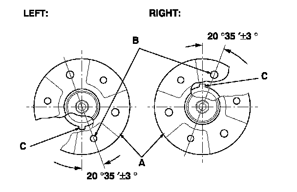 4. Position the damper mounting base (A) so the stud bolt (B) is aligned with the aligning tab (C) in the damper unit as shown.