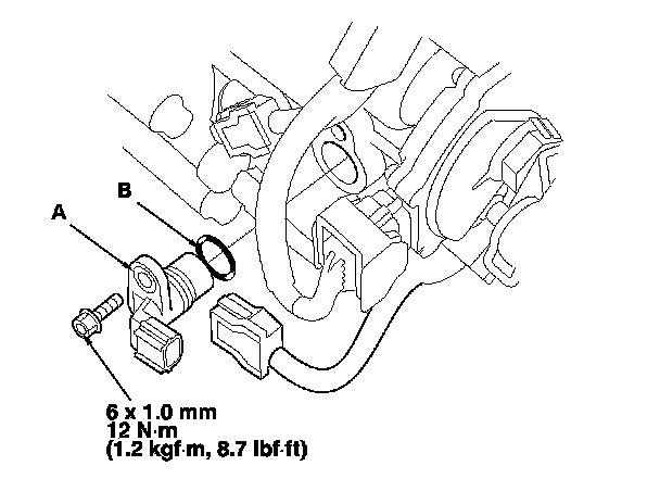 5. Install the new O-ring (B) on the new output shaft (countershaft) speed sensor, then install the output shaft (countershaft) speed sensor.