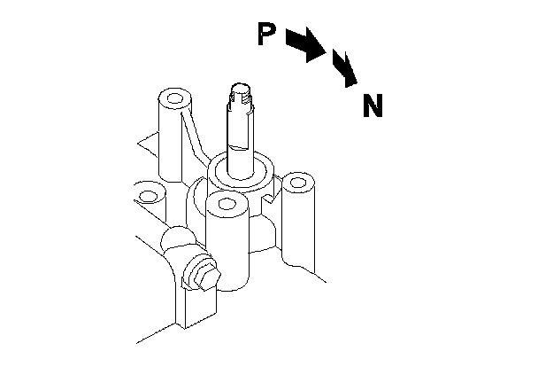 59. With a 6.0 mm wrench, turn the control shaft fully counterclockwise (viewed from the shaft end) to the P position. Turn the control shaft back two click-stopped positions so that it is in the N position.