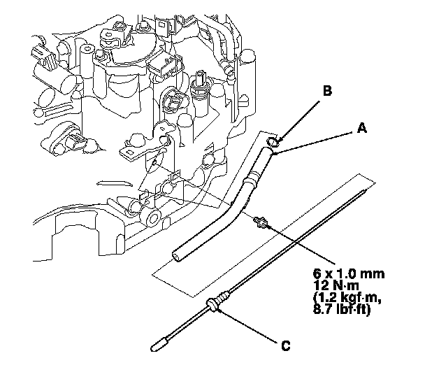 75. Install the ATF dipstick (C) in the guide tube.