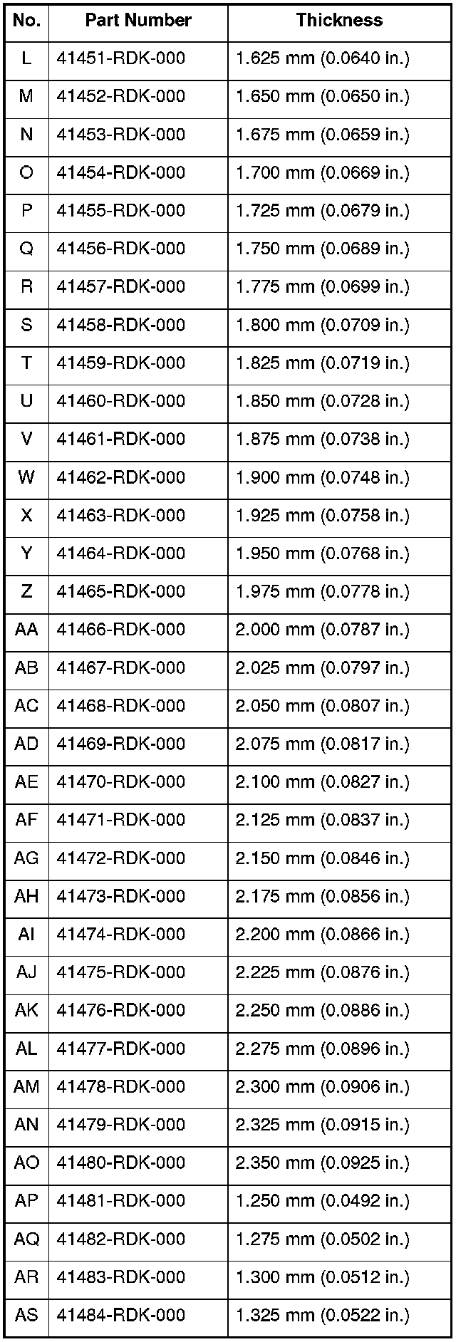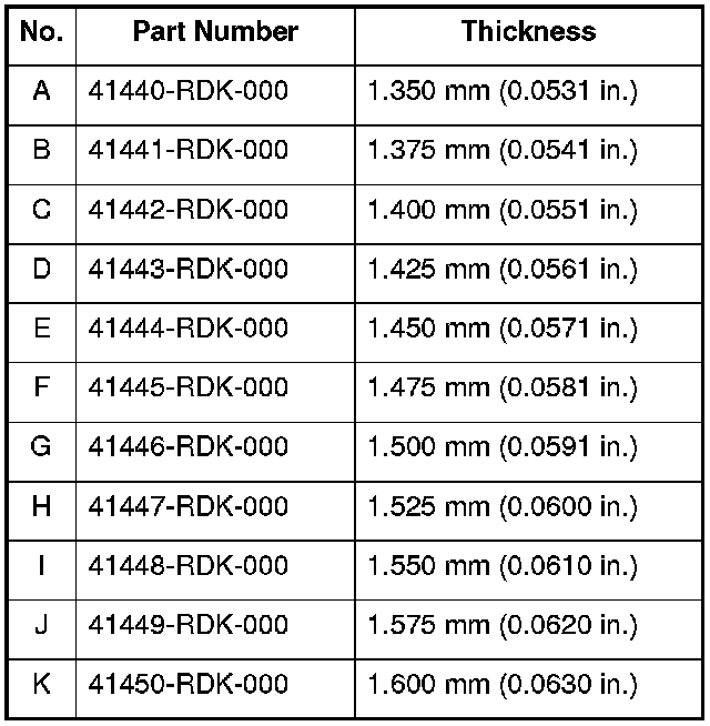 Changing the shim to the next size will increase or decrease the starting torque about 0.5-0.6 N-m (5-6 kgf-cm, 5-5 lbf-in.).