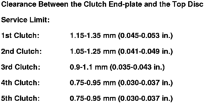 19. Install the new clutch end-plate, and recheck the clearance. If the thickest clutch end-plate is installed, but the clearance is still over the service limit, replace the clutch discs and plates.