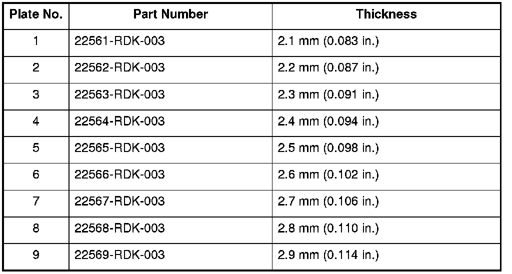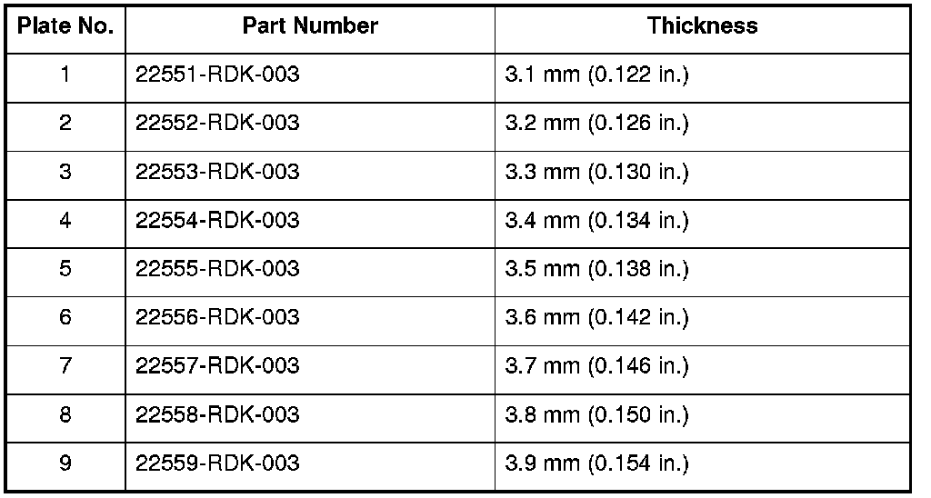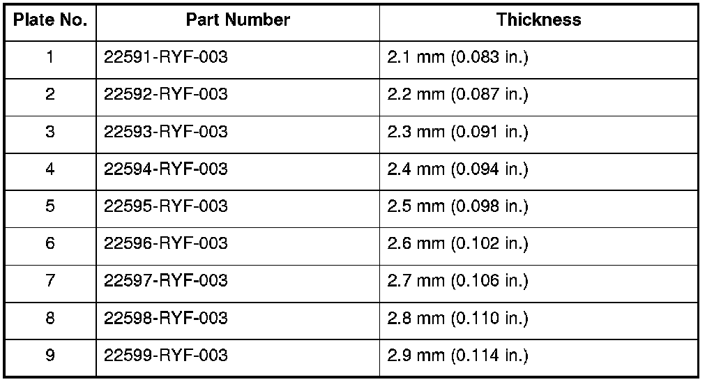 18. If the clearance is out of the service limit, select a new clutch end-plate from the following table.
