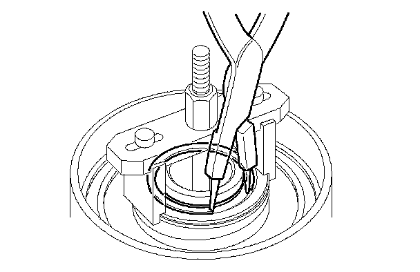 14. Check the placement of the clutch spring compressor attachment. If either end of the clutch spring compressor attachment is set over an area of the spring retainer that is unsupported by the return spring, reset the clutch spring compressor attachment over the proper position.