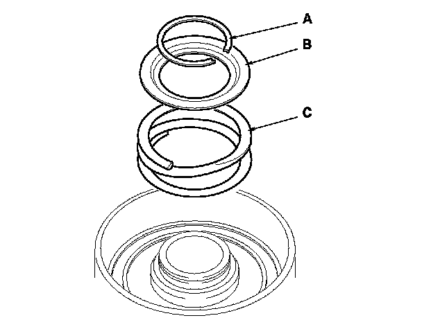 20. Remove the snap ring (A), spring retainer (B), and return spring (C).