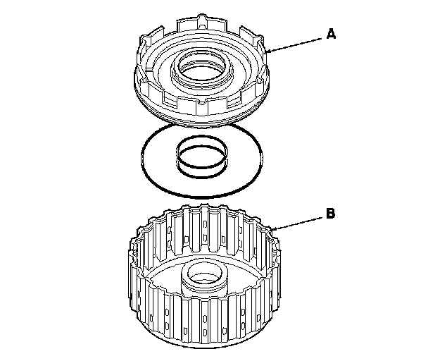 23. Remove the 1st-hold clutch piston (A) from the 1st clutch piston (B), and remove the O-rings from the 1st-hold clutch piston.
