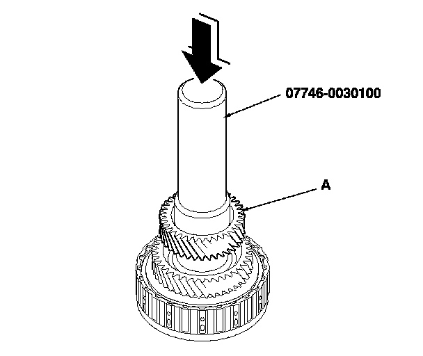 3. Install 4th gear (A) using the driver (40 mm I.D.) and the press.