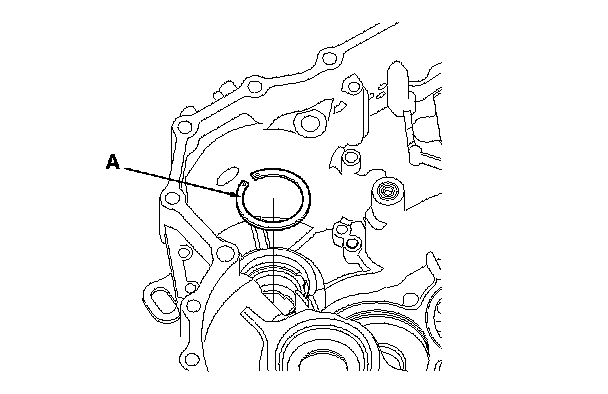 4. Remove the 65 mm thrust shim (A) from the transmission housing, and measure its thickness.