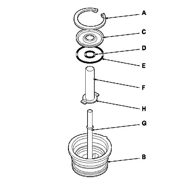5. Install the new O-ring (E) in the cap and feed pipe guide, then secure the guide with the snap ring.