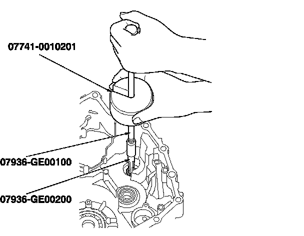 2. Install the new bearing in the transmission housing using the driver and the attachment (22 x 24 mm).