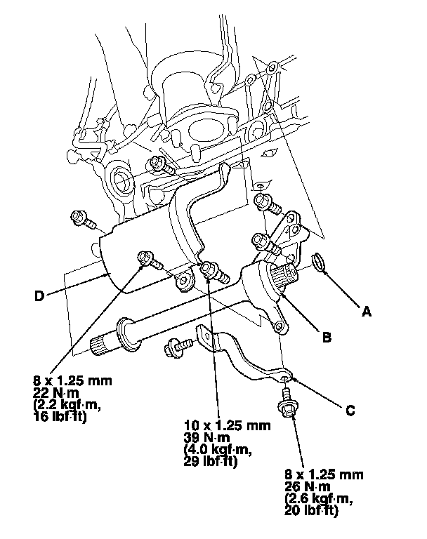 15. Install the exhaust manifold bracket (C) and heat shield (D).
