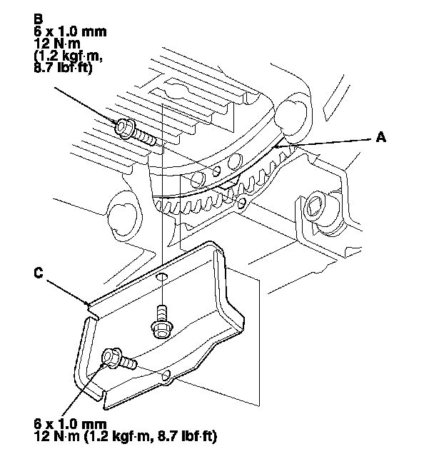 33. Install the torque converter cover (C).
