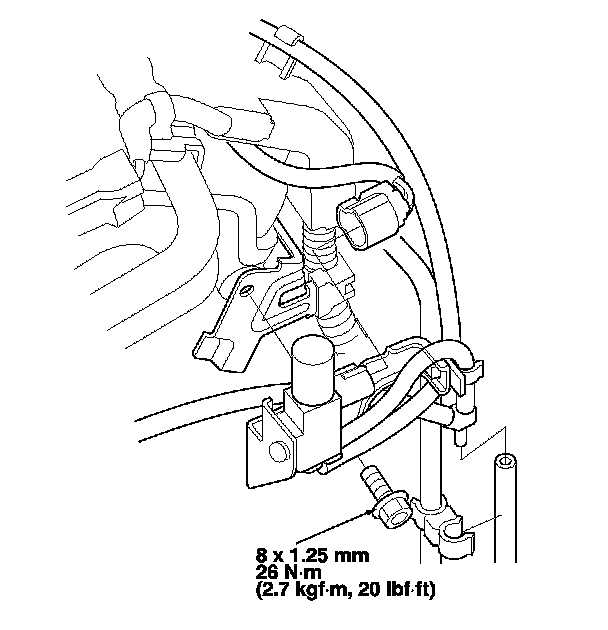 49. Install the clamp brackets on the engine rear cylinder head, and connect the vacuum tube and solenoid connector.