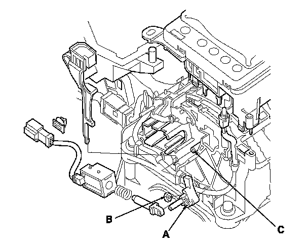 3. Apply silicone grease to the pin (C) on the shift lever bracket base, and install the shift lock stop over the pin. Keep the connector terminals free of silicone grease.