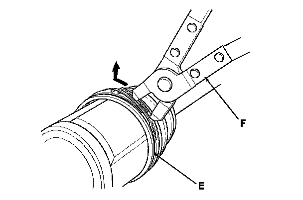 - If the boot band is a low profile type (E), pinch the boot band using commercially available boot band pliers (F).