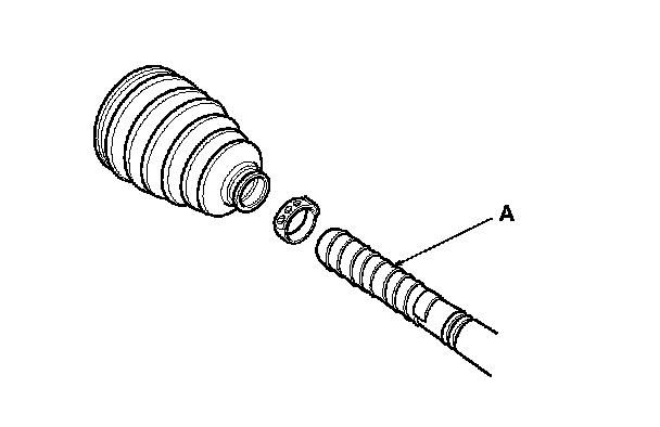 2. Slide the outboard boot (A) partially to the inboard joint side. Be careful not to damage the boot.