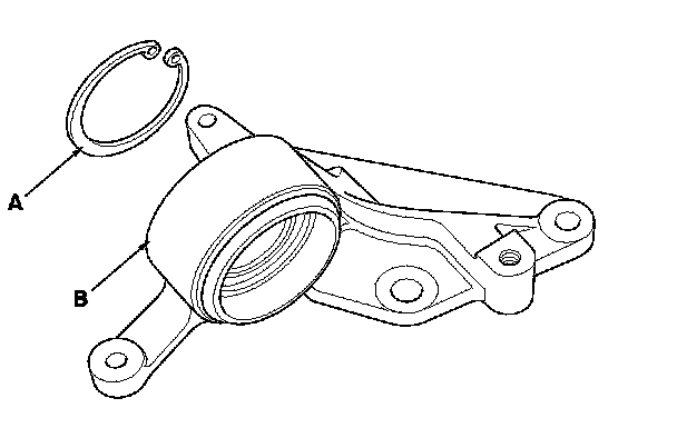 4. Remove the internal snap ring (A) from the bearing support (B).