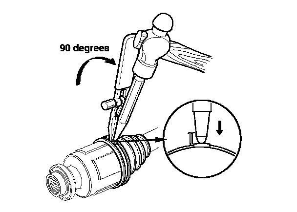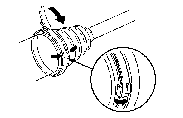 21. Install a new locking tab type boot band on the inboard joint side of the inboard boot. Fold down the locking tabs.