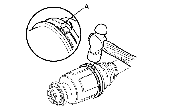1. Wrap the splines with vinyl tape (A) to prevent damaging the inboard boot.