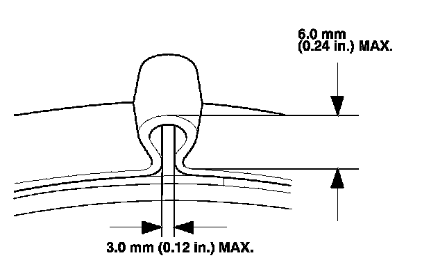 11. Close the ear portion (A) of the band with commercially available boot band pliers, Kent-Moore J-35910 or equivalent (B).