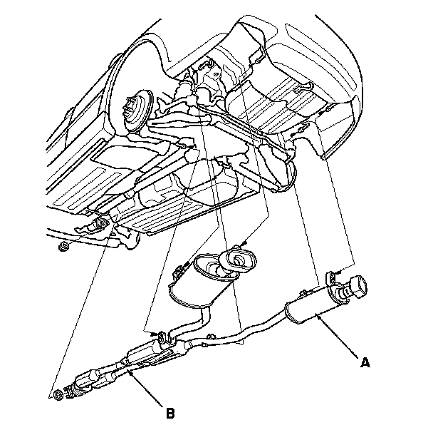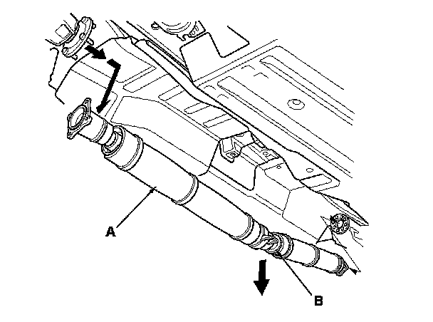 2. Remove the muffler (A) and the exhaust pipe B.