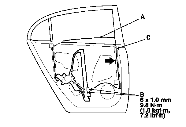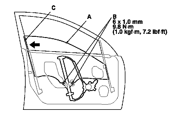 4. Push the glass against the channel (C), then tighten the glass mounting bolts.