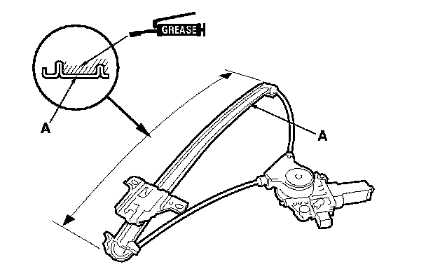 10. Apply multipurpose grease to all the sliding surfaces of the regulator (A) where shown.