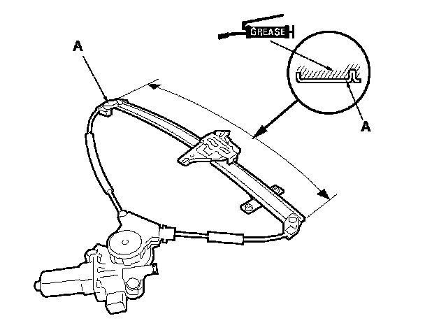 5. Apply multipurpose grease to the sliding surfaces of the regulator (A) where shown.
