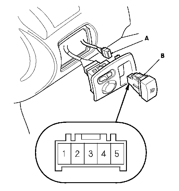 2. Disconnect the 5P connector (A) from the headlight washer switch (B).